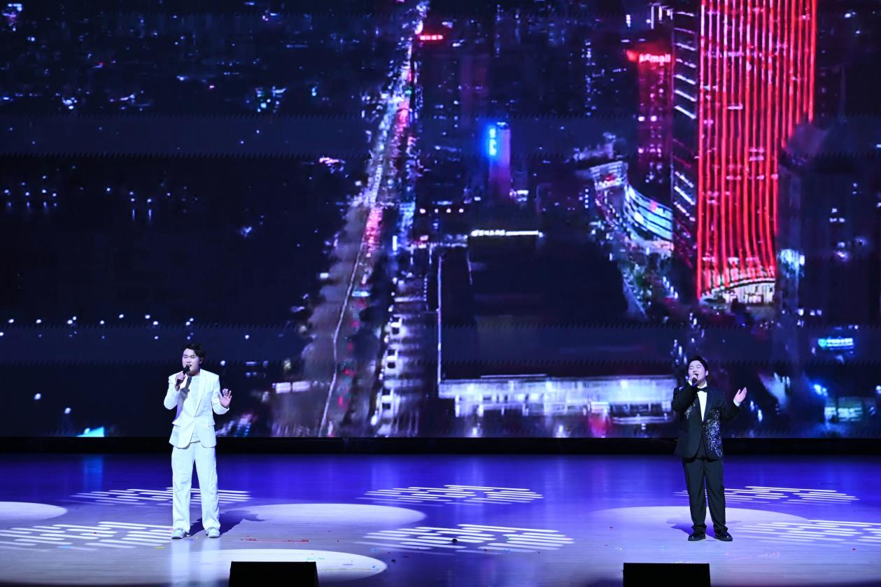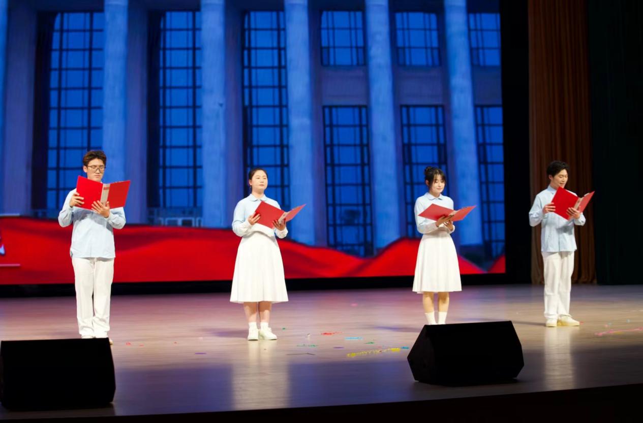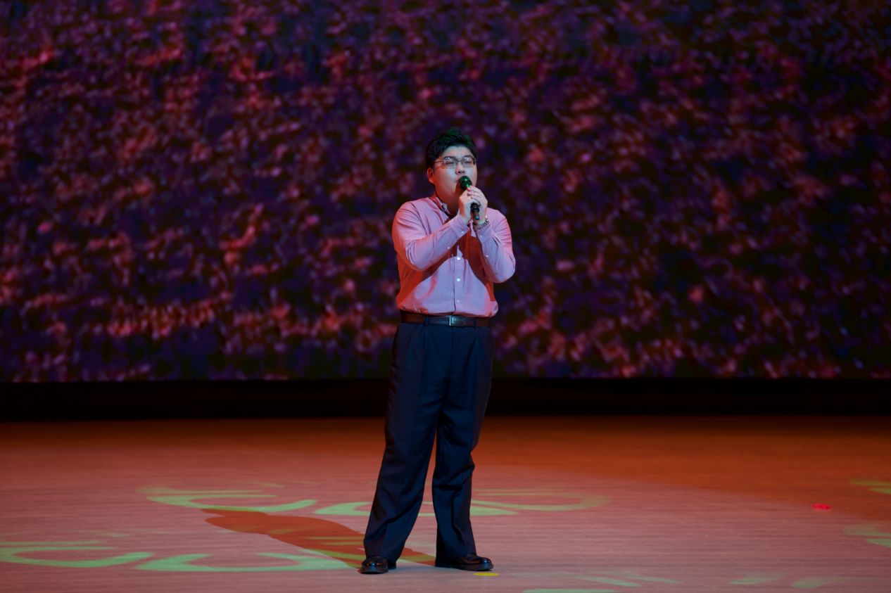 全体演员与现场师生的大合唱《歌唱祖国》将晚会推向高潮,熟悉的旋律响彻全场,真挚的情感浸润人心,晚会随之圆满落幕。
