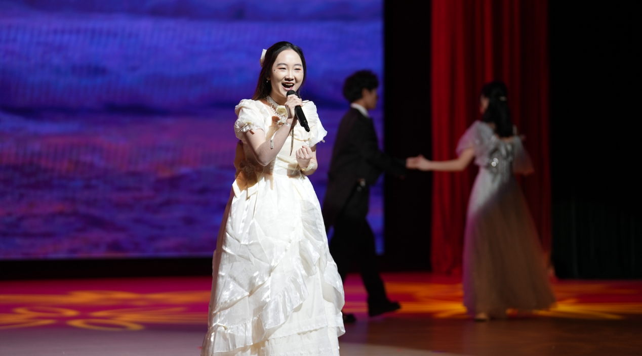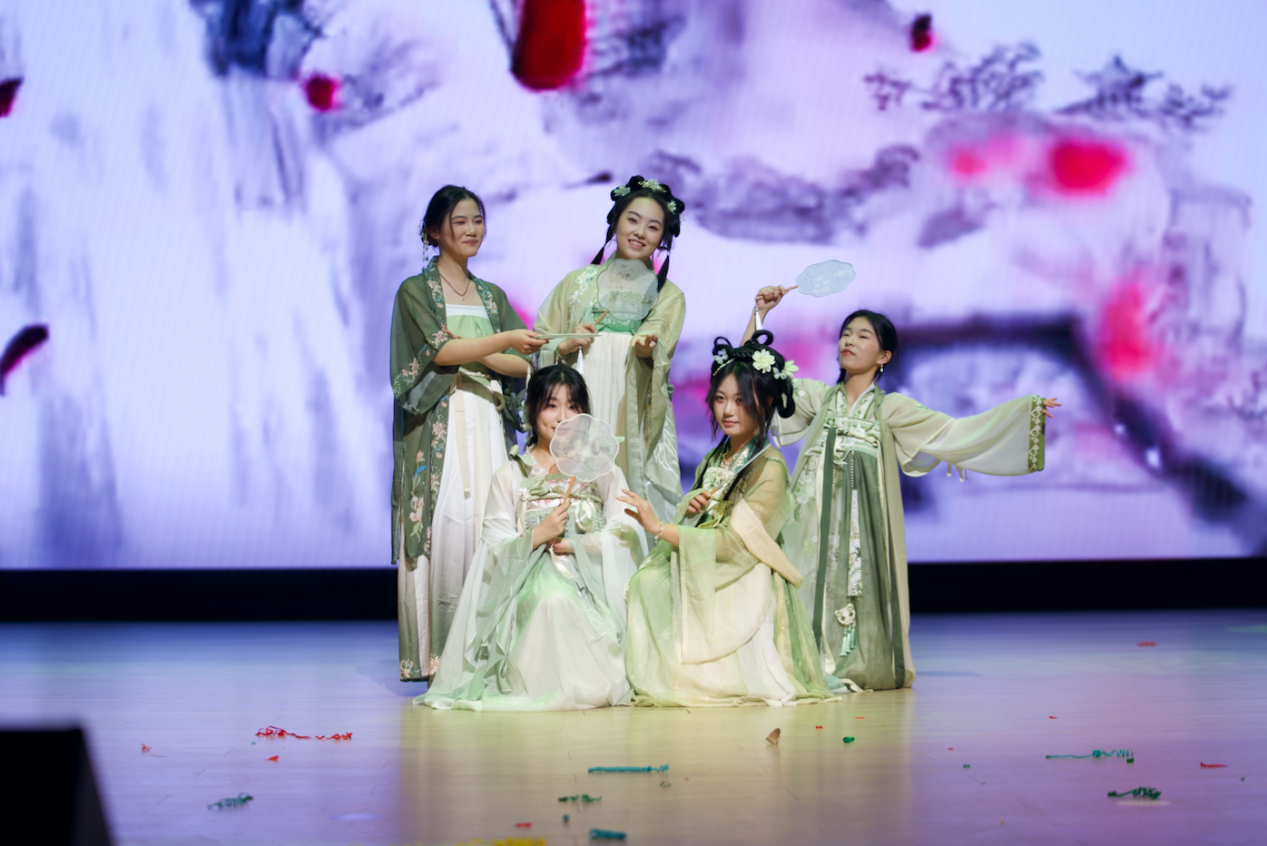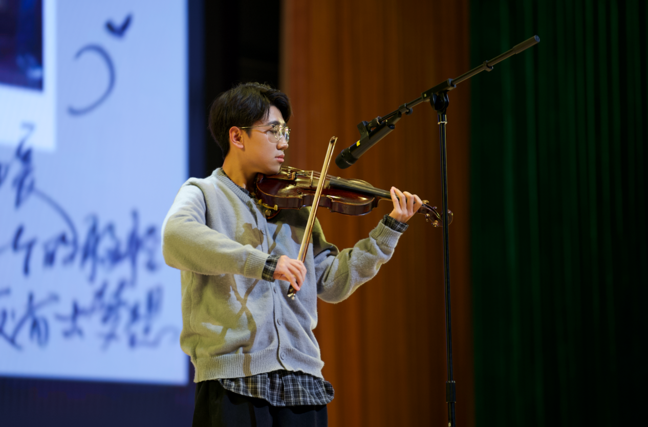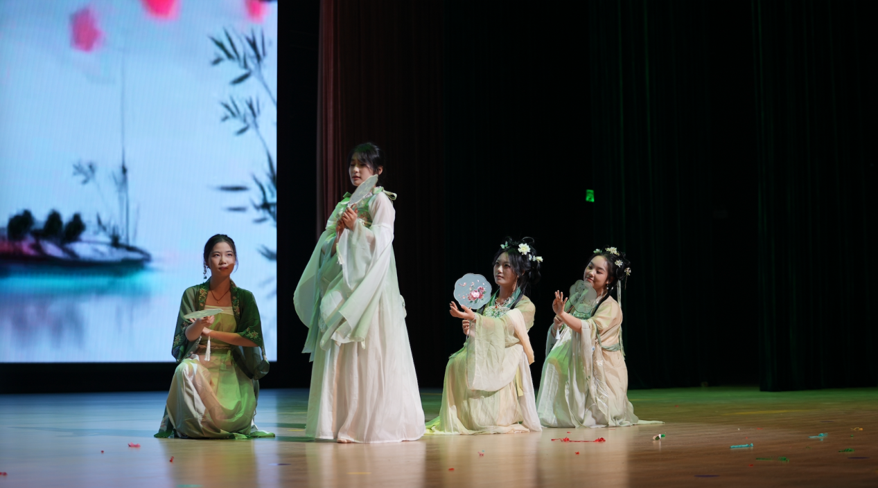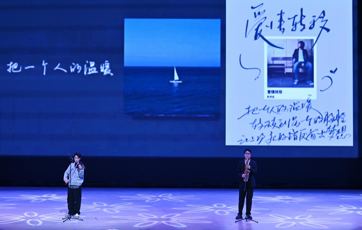 集体诗朗诵《请党放心,强国有我》铿锵有力,同学们以激昂的语调抒发新时代青年的使命担当;古典舞蹈《入画江南》舞姿柔美,步步生韵,将江南水乡的温婉雅致与东方美学的独特韵味展现得淋漓尽致;《紫荆花盛开》《秋水长天》《Love Story》《答案》等歌曲轮番唱响,表演者们以深情歌声传递真挚情感,深深打动在场观众;拉丁舞与街舞表演动感十足,利落的动作尽显我校学子积极向上的精神风貌;小品《米其林体验课》《八十一难》《谁逼疯了周日》聚焦校园生活,用幽默诙谐的演绎展现学子的机智创意与蓬勃朝气;乐器演奏节目中,萨克斯的深沉悠扬与小提琴的典雅细腻交织共鸣,为现场观众献上一场极致的听觉盛宴。