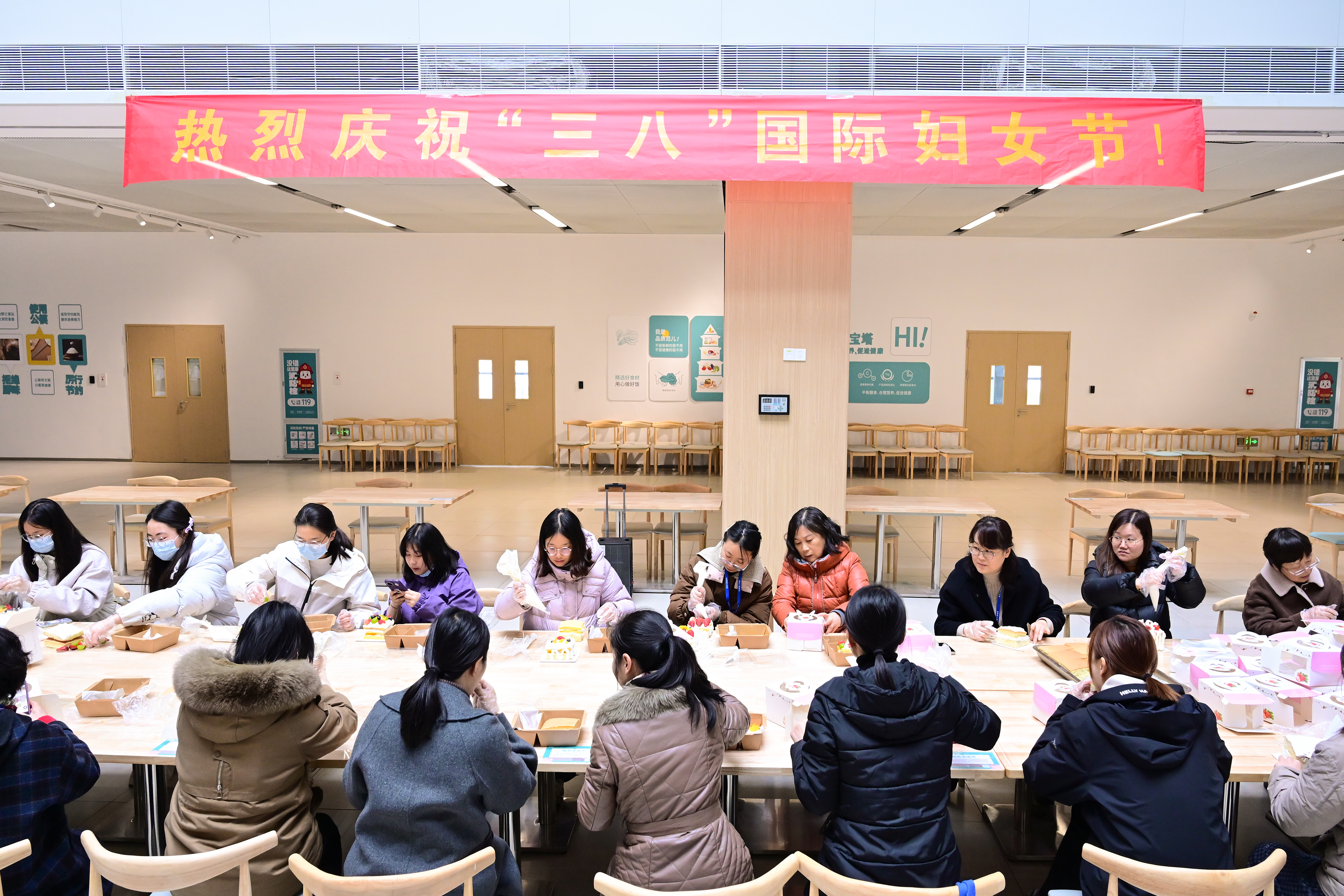 春意渐浓,芳华绽放。为庆祝第116个“三八”国际妇女节,3月5日,我校在西区食堂举办“巾帼绽芳华 巧手做甜蜜”蛋糕DIY活动。校党委副书记、校长吴玉程,校党委副书记、副校长李先强出席活动,为女同胞们送上节日问候。本次活动由校妇联与基建后勤部、团委联合举办。